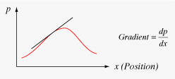 | | GRADIENT, OF PRESSURE | | Description | (In a single spatial direction) Spatial rate of change of pressure, derivative of pressure with respect to position.  | | Expressions | Vertical pressure gradient in hydrostatic equilibrium: dp/dh = g·rho | | Related to | gravitational pressure gradient, hydrostatic pressure, hydrostatic equilibrium, | | Remarks | | | German | Druckgradient | | |  | | |