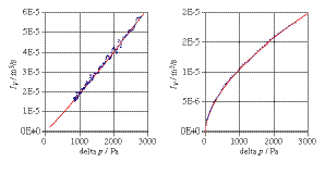 | | RESISTIVE CHARACTERISTIC (FLOW CHARACTERISTIC) | | Description | If a fluid flows through conduits, the pressure decreases in the direction of flow (this is the result of fluid friction which results in the production of heat). The concrete current pressure difference relation (IV(∆pR)) is called the resistive characteristic or flow characteristic. The associated pressure difference along a path is called the resistive pressure difference. | | Expressions |  Left: Resistive characteristic for laminar flow; right: for turbulent flow. A value of a combination of characteristic values of the flowcalled the Reynolds numbertells us if a flow is laminar or turbulent.  The relation can be expressed graphically (flow versus resistive pressure difference), formally with an equation interpolating the measured function IV(∆pR), or with the help of the resistance R_V in the case of laminar flow. | | Related to | | | German | hydraulische Widerstands-Charakteristik (Strömungscharakteristik) | | |  | | |