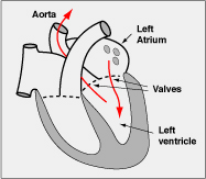 In contrast to many modern industrial pumps, the heart works not as a flow-pump ( Problem 12) but intermittently. It takes up blood from the left (or right) atrium into the left (or right) ventricle, closes all the valves, contracts, and increases the pressure of the fluids. Then the blood is ejected, for example from the left ventricle into the aorta from where it flows through the body.