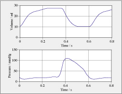Use the time graphs of volume and pressure to describe how the left ventricle works.